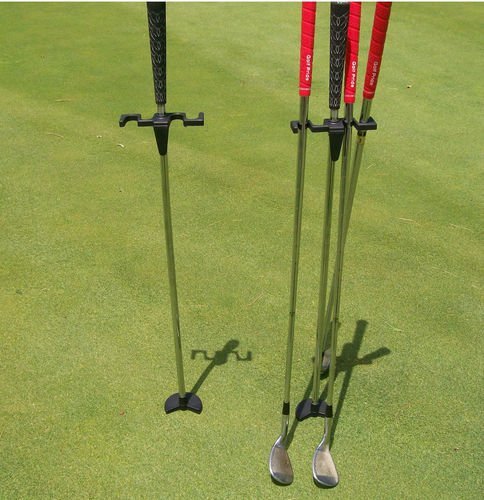 The Golf Butler Golf Caddie - The Perfect Gift for Any Golfer! Unbelievably Convenient!ONE TIME DEAL. LIMITED SUPPLY - TAKE ADVANTAGE WHILE SUPPLIES LASTThe Golf Butler eliminates wet grips and keeps you organized to score better, eliminates the fear of losing clubs, speeds up play by not having to run back for clubs left around the greens, and eliminates bending over to pick up clubs. It holds four clubs and a towel and clips on the outside of golf bag. (You just push it into the ground!) It has a built in stainless steel divot and ballmark repairer. Approx. 34 1/4H. Made in Taiwan.